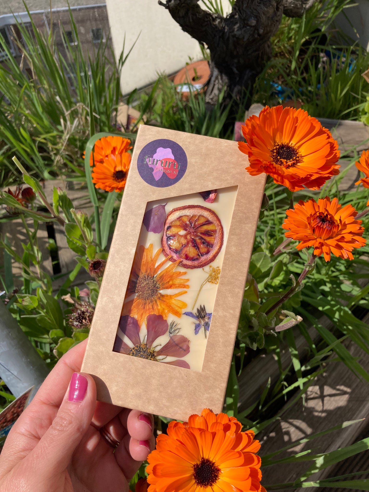 Wees niet ongerust; deze houdbaarheidsdatum staat erop omdat in de loop van de tijd de kleurintensiteit van de gedroogde bloemen afneemt. De reep is dan nog steeds lekker en eetbaar, maar zal in pracht beetje bij beetje minder worden. De bloemen zijn gedroogd, dus bijna oneindig houdbaar.